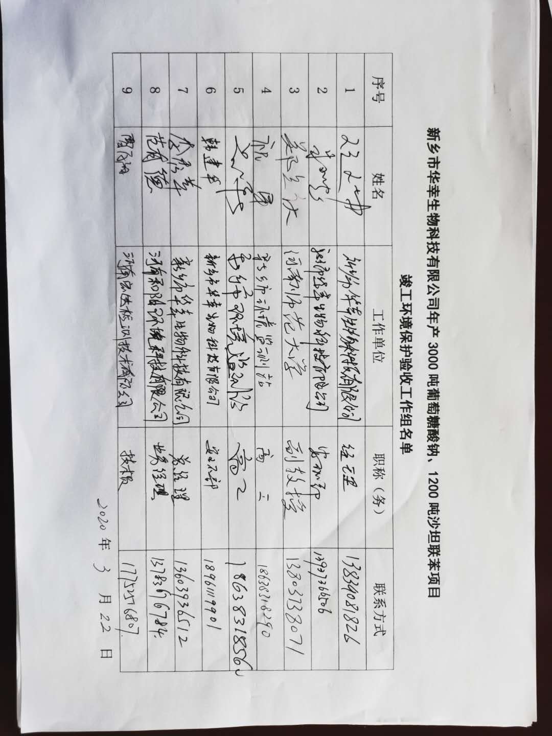 依據(jù)國務院第682號文頒布的新《建設項目環(huán)境保護管理條例》和原環(huán)境保護部國環(huán)規(guī)環(huán)評[2017]4號文公告的《建設項目竣工環(huán)境保護驗收暫行辦法》的相關要求,新鄉(xiāng)市華幸生物科技有限公司于2020年1月20日在新鄉(xiāng)市華幸生物科技有限公司廠區(qū)召開會議,對新鄉(xiāng)市華幸生物科技有限公司年產30000噸葡萄糖酸鈉、1200噸沙坦聯(lián)苯項目進行竣工環(huán)境保護驗收。會議成立了驗收工作組,成員由建設單位新鄉(xiāng)市華幸生物科技有限公司、驗收檢測單位河南和陽環(huán)境科技有限公司、河南宏達檢測技術有限公司的代表及邀請的技術**組成(驗收工作組名單附后)。會前,驗收工作組成員對工程主要生產設施、環(huán)保設施進行了現(xiàn)場檢查,會議聽取了建設單位關于項目建設情況及竣工環(huán)保工作的情況介紹、竣工環(huán)保驗收監(jiān)測報告編制單位關于驗收監(jiān)測工作技術匯報,查閱了竣工環(huán)保驗收監(jiān)測報告,核實了有關資料。經過認真審議與討論,形成如下驗收意見: